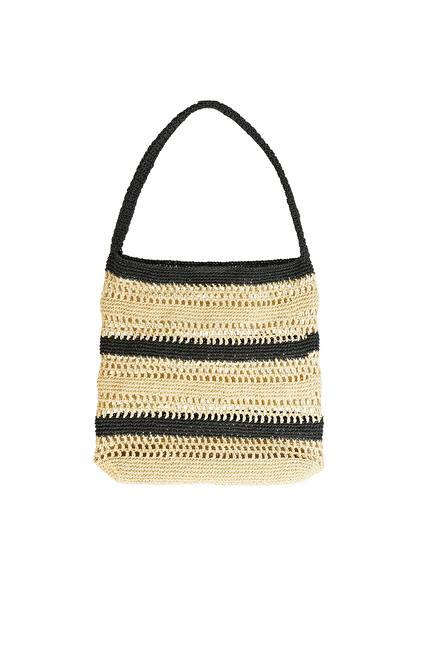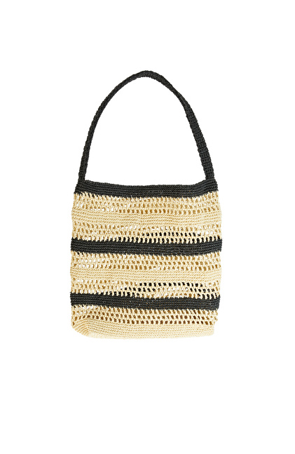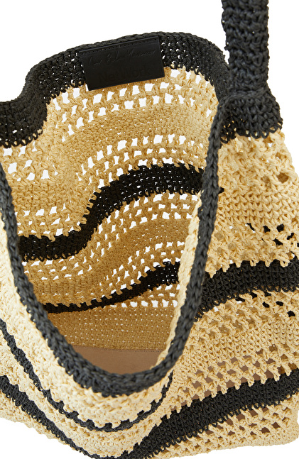 Siyah Bej Kadın Kağıt Hasır Çanta