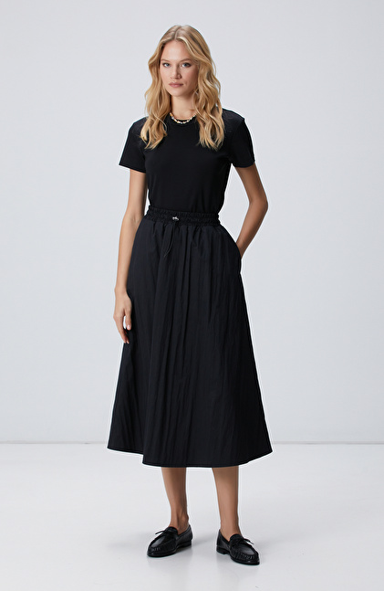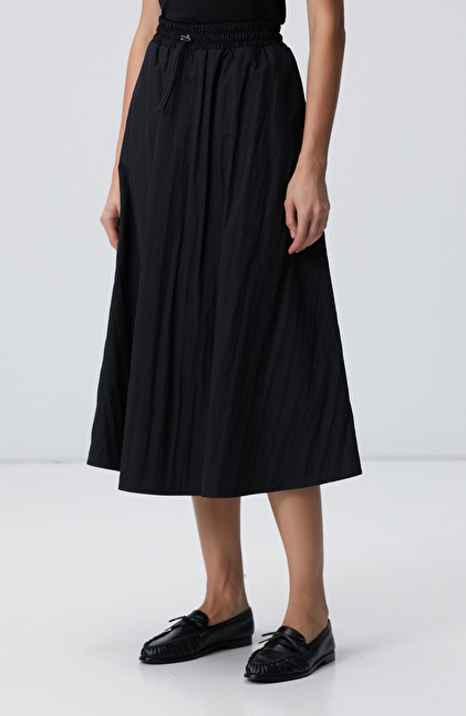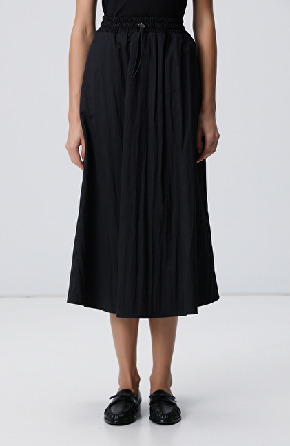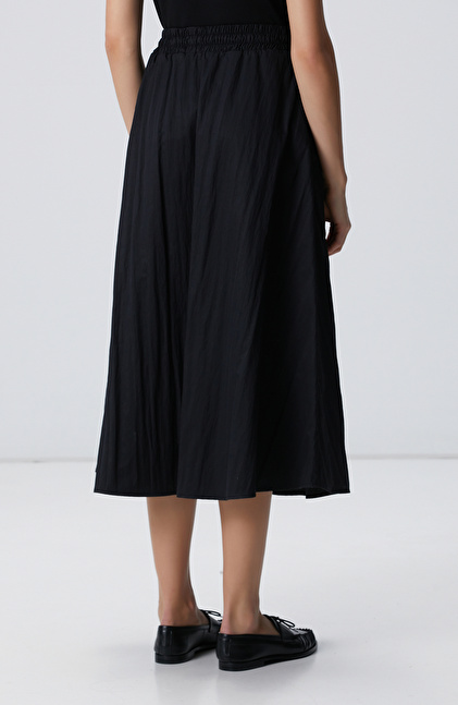 NETWORK Siyah Beli Büzgülü Lastikli Diz Altı Etek