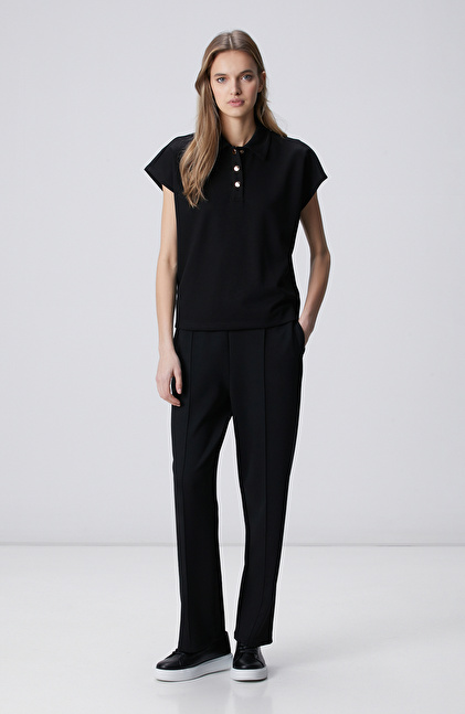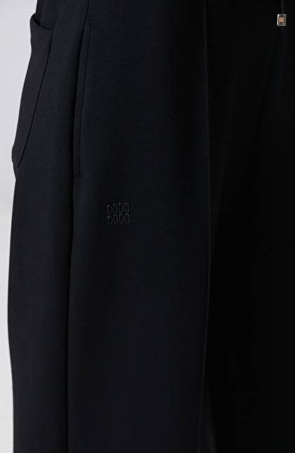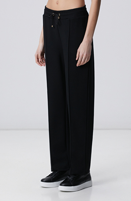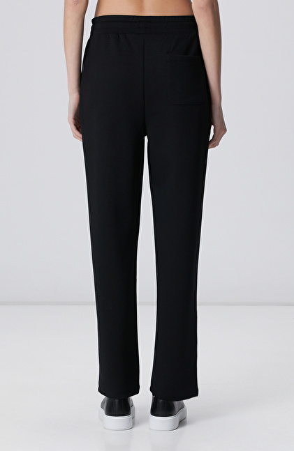 Siyah Beli Lastikli Nervürlü Boru Paça Eşofman Alt