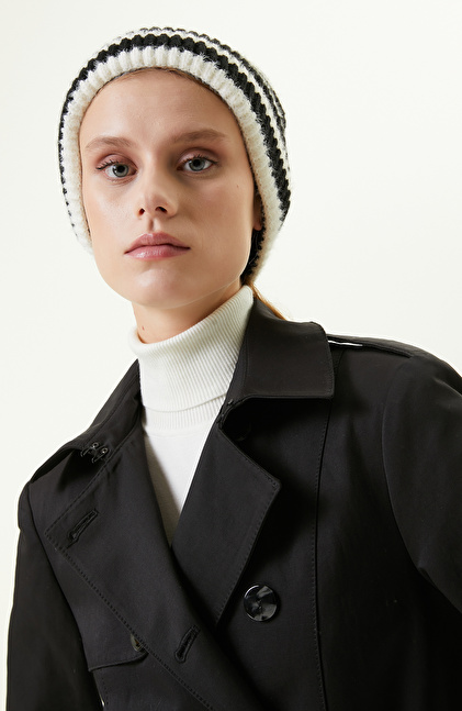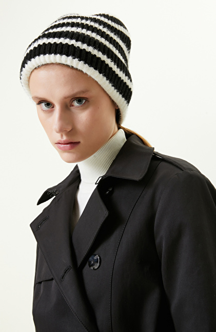 Siyah Beyaz Çizgili Kadın Bere