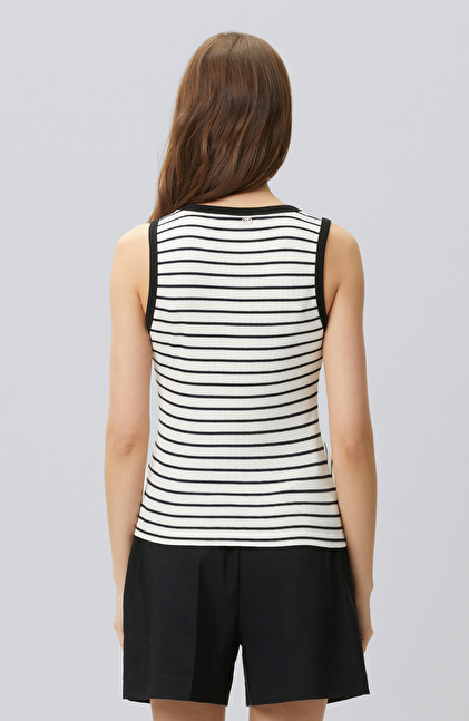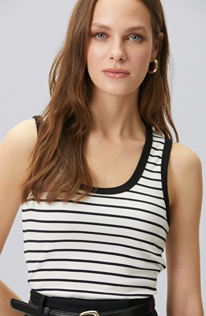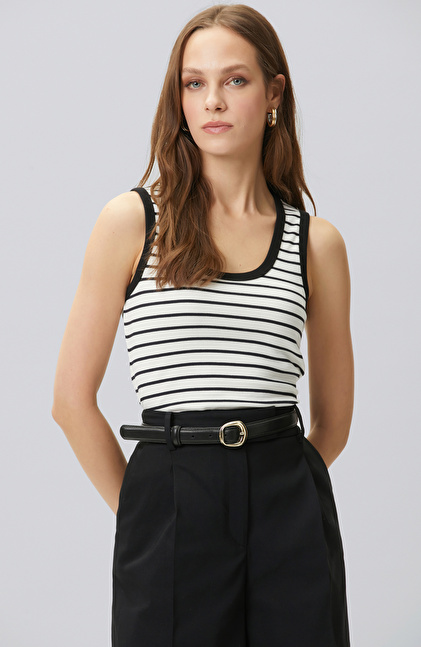NETWORK Siyah Beyaz İnce Askılı Çizgili Kaşkorse Atlet