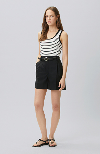 Siyah Beyaz İnce Askılı Çizgili Kaşkorse Atlet