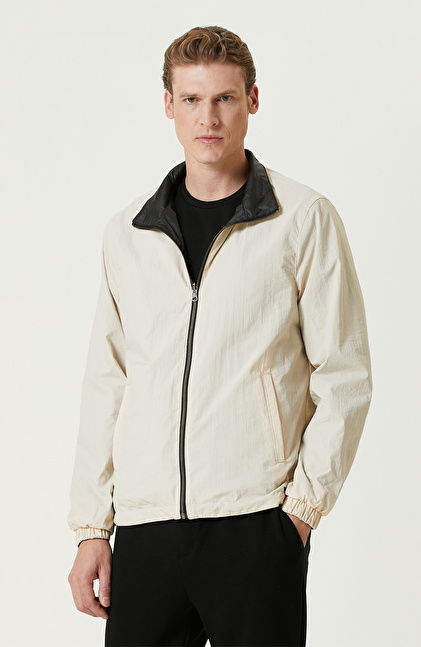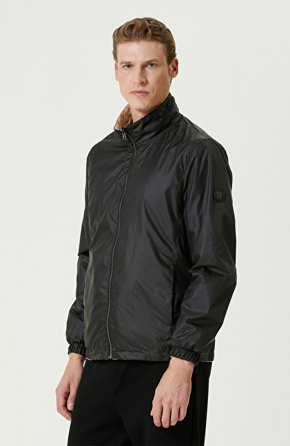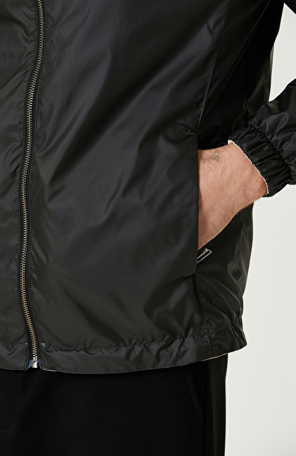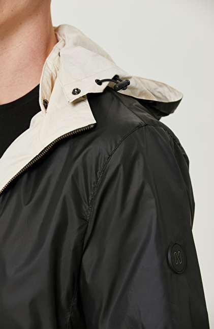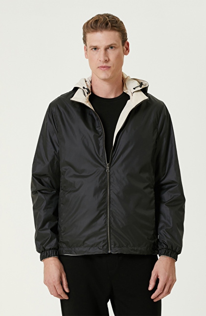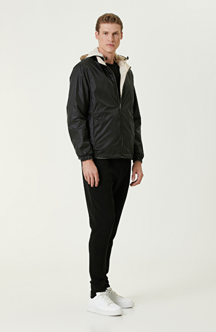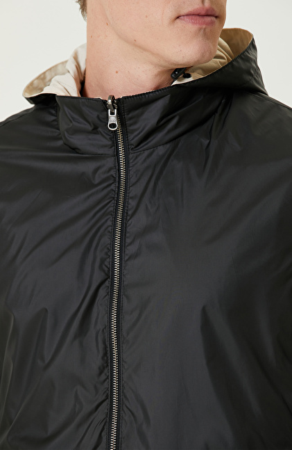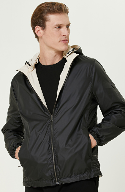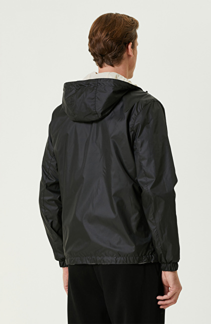 Siyah Beyaz Kapüşonlu Çift Taraflı Mont