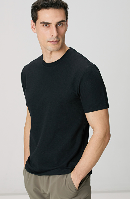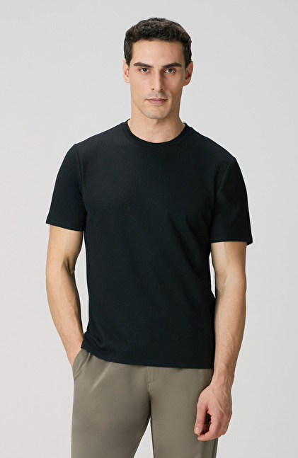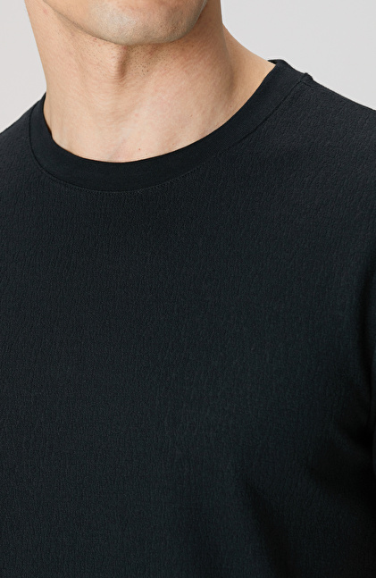 Siyah Bisiklet Yaka Jakarlı T-shirt