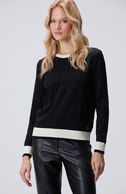Basic Fit; Bisiklet Yaka; Cepsiz; Uzun Kol; Kol Ve Yaka Ucu Kontrast Renk Kazak