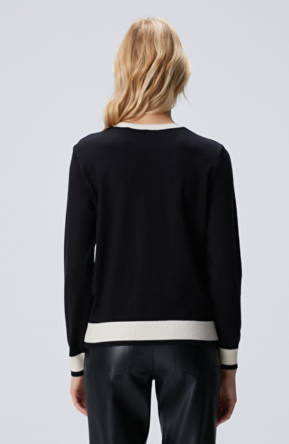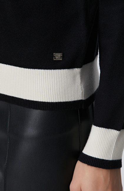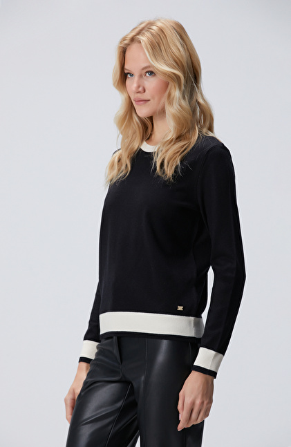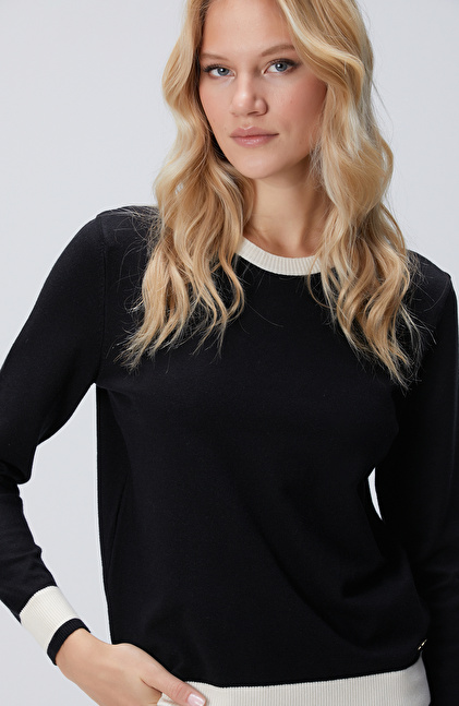 Siyah Bisiklet Yaka Kontrast Renk Kazak