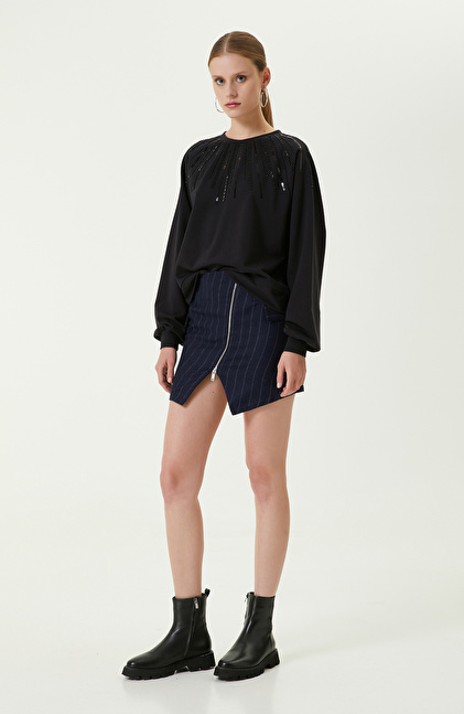 Trendleri lüks ve kaliteyle buluşturan NetWork, Siyah Bisiklet Yaka Penye Sweatshirt ile kadınların kış gardıroplarına konfor ve şıklık getirir. Sezon temeli olan pamuk karışımlı penye sweatshirt, akıllı ve şık kombinler için tasarlanır. Bisiklet yaka ve uzun kollu tasarımın regular fit kesimi iş dışı zamanlarda rahatlığı ve stili birleştirmek isteyen kadınlar için idealdir. Yakası boncuk işlemeli sweatshirt tüm kış kombinlerine hareket katar ve sofistike bir tarz ekler. Siz de siyah parçayı; fermuarlı mini lacivert etek, siyah deri bootie ve halka küpelerle kombinleyerek sokak modası trendlerini iddialı ve yenilikçi bir tarzda yorumlayabilirsiniz.