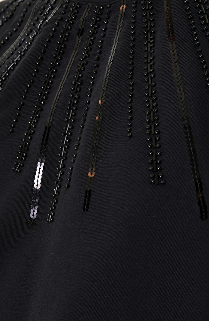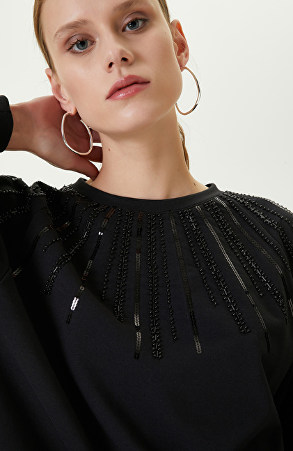 Siyah Bisiklet Yaka Penye Sweatshirt