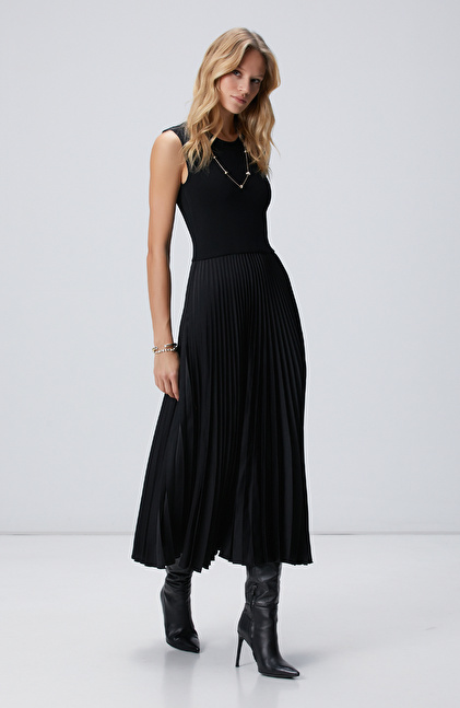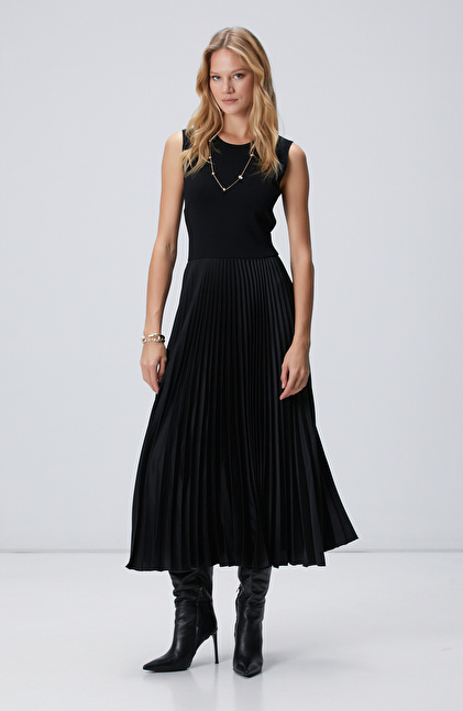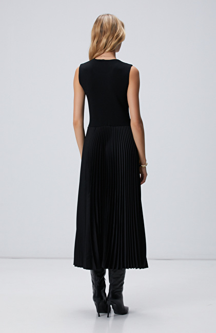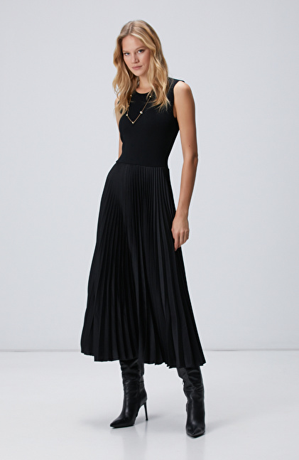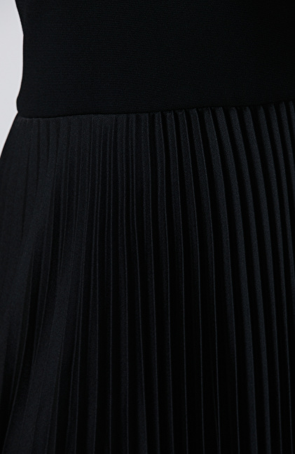 Siyah Bisiklet Yaka Pliseli Elbise