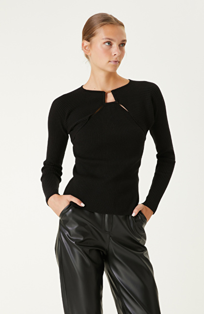 NetWork’ün zarif çizgisini yansıtan Siyah Bisiklet Yaka Triko Kazak, sonbahar ve kış için ideal bir parçadır. Casual detayları ve esnekliğiyle rahatlığı günün her anında hissettirir. Bisiklet yaka tasarıma eklenen metalik toka geçişi, geometrik desenleriyle kendine has stilini ortaya koyar. Kusursuz tasarımı, kendinizi her an özel hissetmenize yardımcı olur. Uzun kollu yapısı sayesinde mevsim geçişlerine hazırlıklı olmanızı sağlar. Zarif görünümüyle günlük kombinlerin yanı sıra parti, toplantı, iş yemeği gibi özel anlarda da tercih edilebilir. Siz de bu parçayı bol paça deri pantolon, gri renk uzun kaban, siyah renk bot ve gold detaylı bilekliklerle kombinleyerek özel günlere hazırlanabilirsiniz.