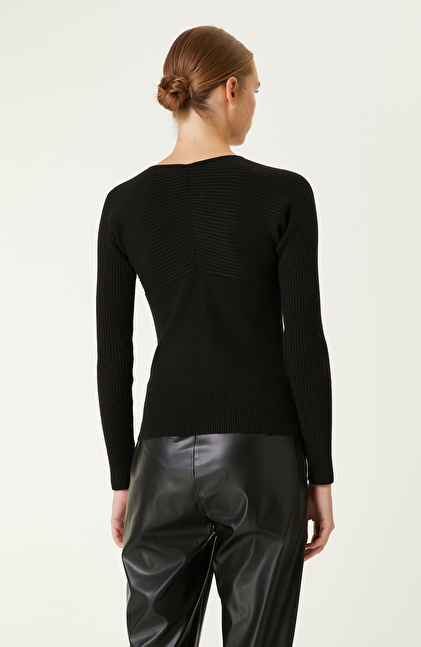 Siyah Bisiklet Yaka Triko Kazak