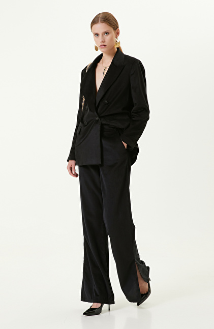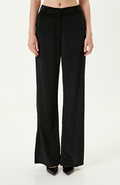 Süper havalı ve yüksek kaliteli tasarımların mimarı olan NetWork, kış koleksiyonundaki Siyah Bol Paça Pantolon ile şehirli ve modern kadınların stillerini güçlendirir. Tencel dokuma kumaşın ultra yumuşak ve pürüzsüz dokusu smart casual tarzı kusursuz bir şekilde tamamlar. Regular fit kesimi silüete maskülen ve feminen arasında mükemmel bir denge sağlar. Bol paça yüksek bel parça zamansız ve net silüeti ile soğuk kış günleri için tam bir sezon parçasıdır. Siz de siyah düz renkteki pantolonu; blazer ceket ve stiletto ile kombinleyebilir, gold renkte kolye ve küpeler ile son dokunuş yaparak tarzınızla tüm bakışları üzerinize çekebilirsiniz.