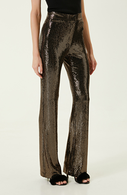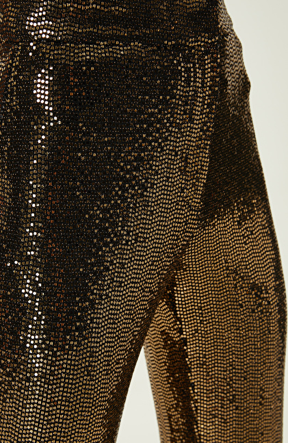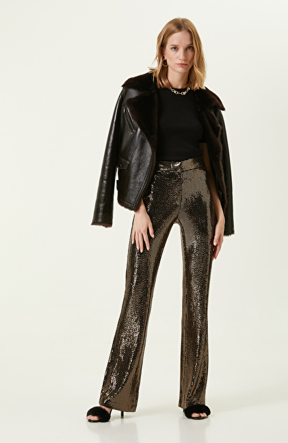 Siyah Bol Paça Pantolon, NetWork’ün modern ve yenilikçi moda anlayışını taşıyan sonbahar/kış sezonu parçalarından biridir. Normal bel ve düz paça ayrıntılarına sahip olan model, regular fit kalıbı ile bedenin rahatlığını düşünen bir yapıdadır. Payetli tasarımı sayesinde son derece şık ve yaratıcı bir görünüm taşıyan parça, cesur kadınların sosyal yaşamlarında tercihlerindendir. Yüksek kaliteli dokuma kumaştan elde edilen tasarım, NetWork Black koleksiyonunun bir üyesidir. Soğuk mevsimlerde kullanıma uygun olan pantolon, Secret Society serisinde yer alan göz alıcı modellerdendir. Payetli bol paça pantolonu; siyah kazak, kahverengi deri ceket, altın renk tonlarında takılar ve siyah deri topuklu bot ile kombinleyebilirsiniz.