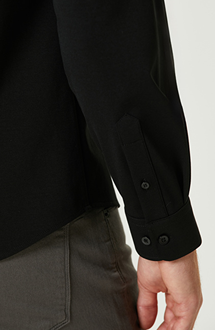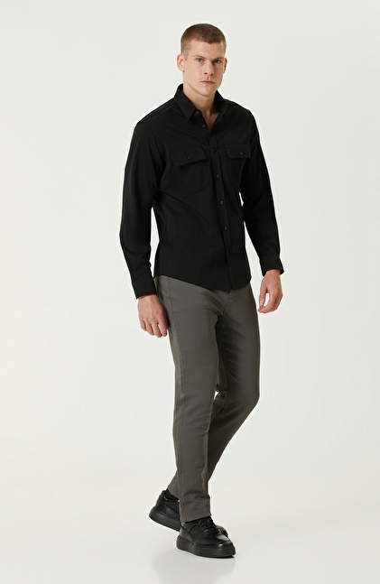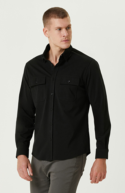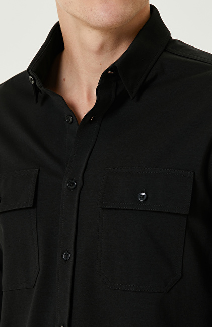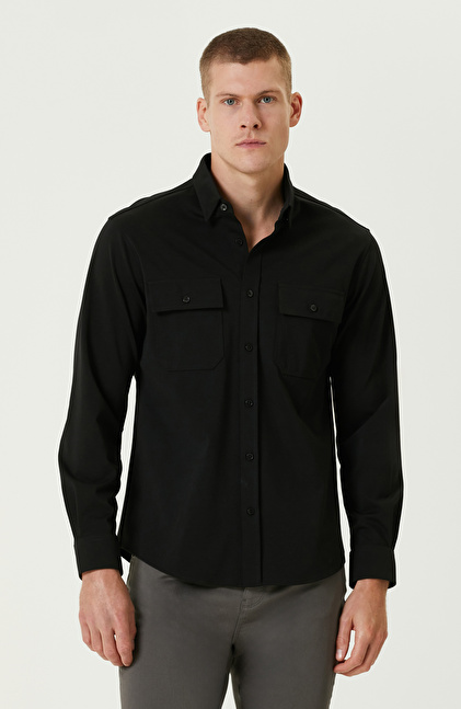NETWORK Smart Casual Siyah Çift Cepli Örme Gömlek