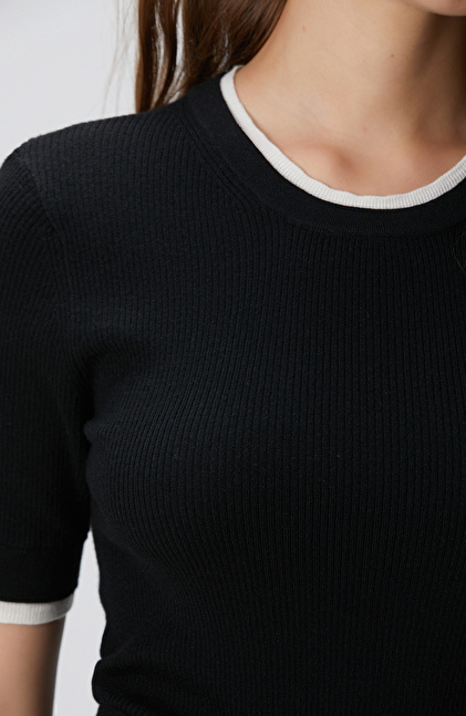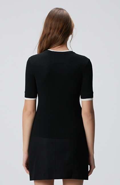 Siyah Çift Renkli Kısa Kol Triko Kazak