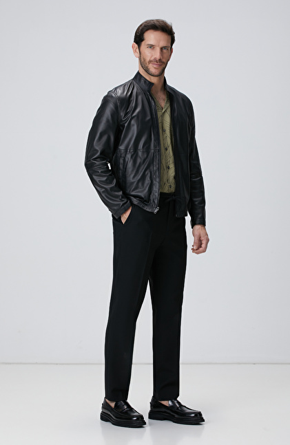 Siyah Çift Taraflı Deri Mont