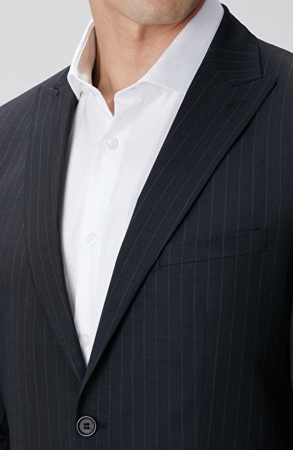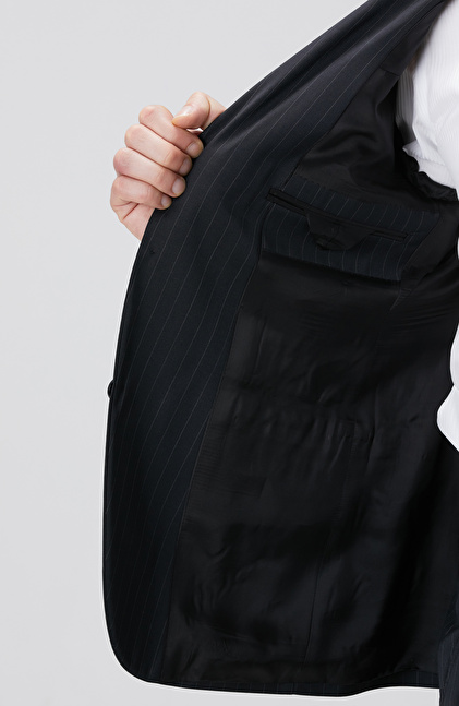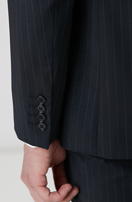 Siyah Çizgi Desenli Yün Karışımlı Takım Elbise
