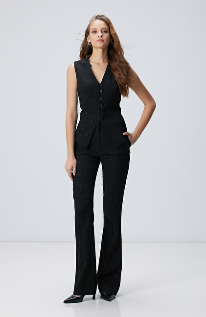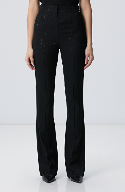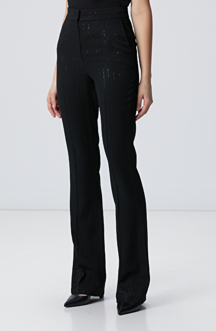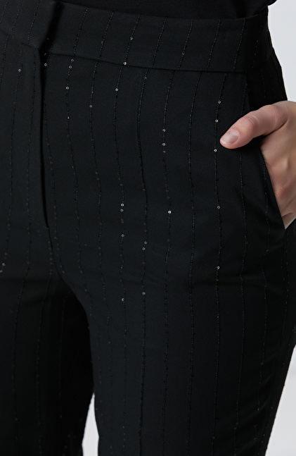 Siyah Çizgili Payetli Pantolon