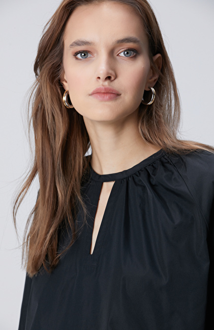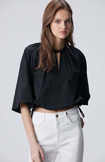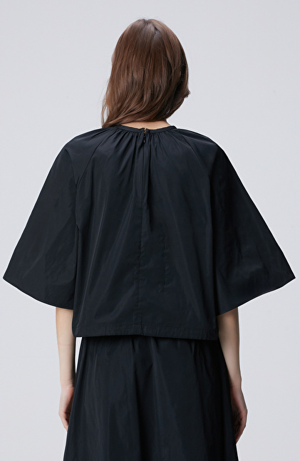Siyah Crop Tafta Bluz