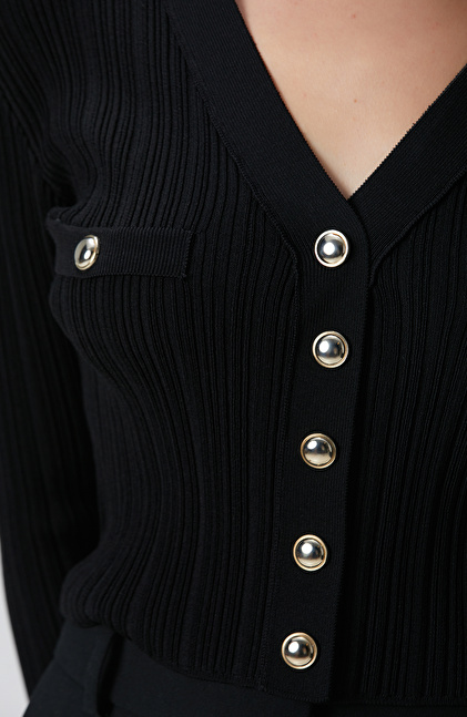 Slim Fit; V Yaka; Uzun Kol; Cepli; Crop Form; Triko Hırka