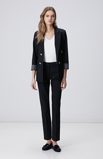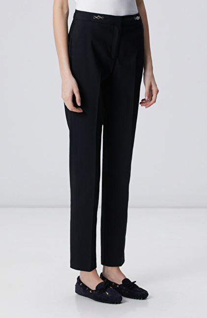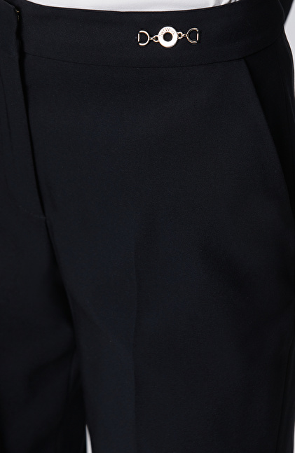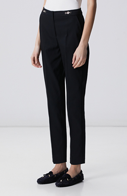 Siyah Dar Paça Beli Metal Aksesuarlı Pantolon