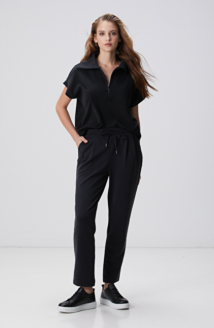 Siyah Dar Paça Modal Karışımlı Eşofman