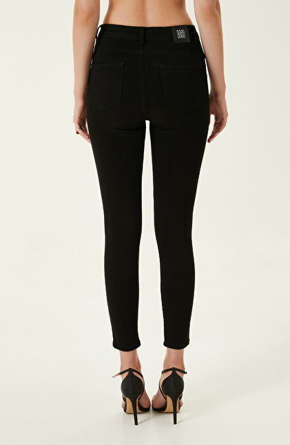NetWork'ün genç ve dinamik çizgisini taşıyan Siyah Skinny Denim Pantolon, gardroplar için üretilmiş anahtar bir parçadır. Denim olduğu için konfor ve hareket özgürlüğünü bir arada sağlayan bu şık tasarım, normal bel yüksekliği ile çok yönlü kullanımı destekler. Dar paça kesimi ve push-up özelliğiyle feminen bir görünüm sağlayan şık tasarım, yumuşak dokunma hissi oluşturan yapısıyla uzun süreli kullanımlarda dahi konforlu hissettirir.