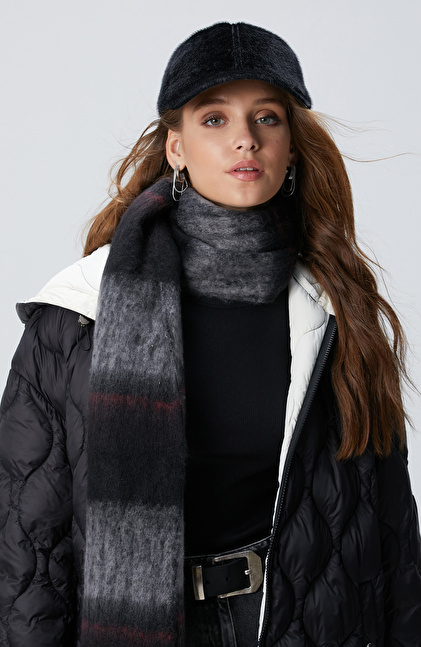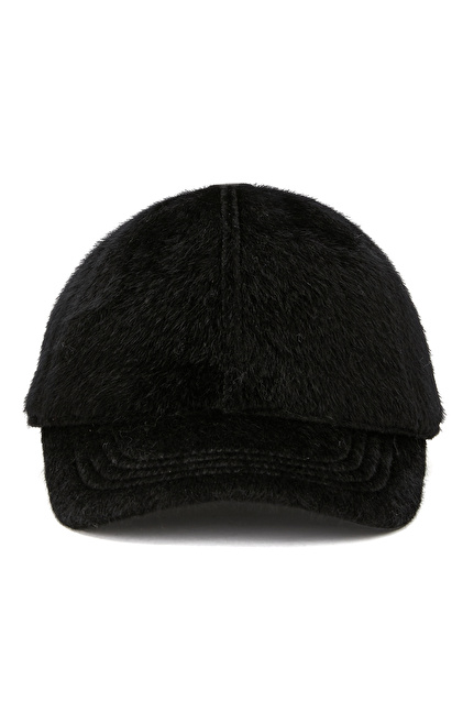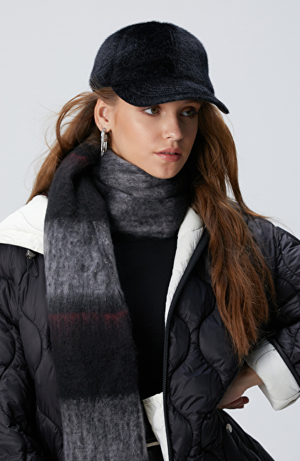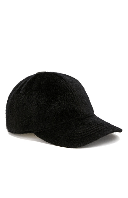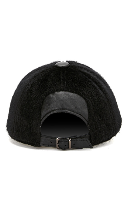 Siyah Deri Karışımlı Kadın Şapka