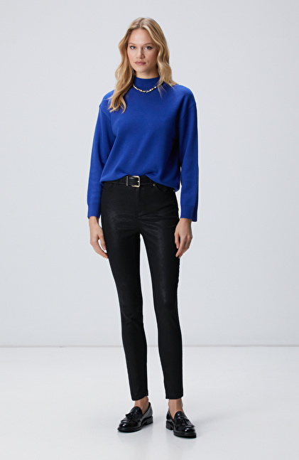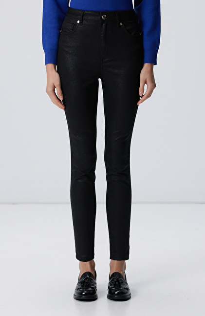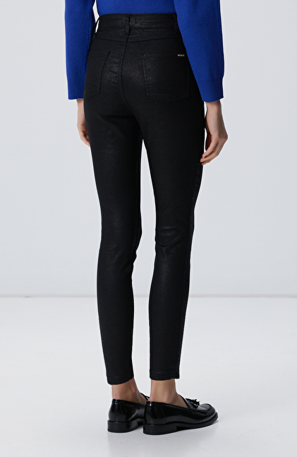 Siyah Desenli Baskı Kaplamalı Casual Pantolon