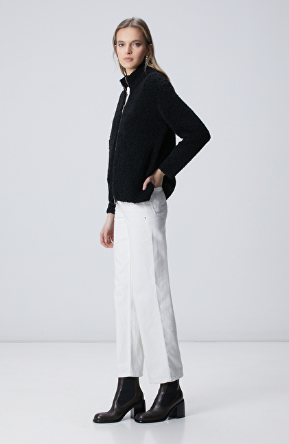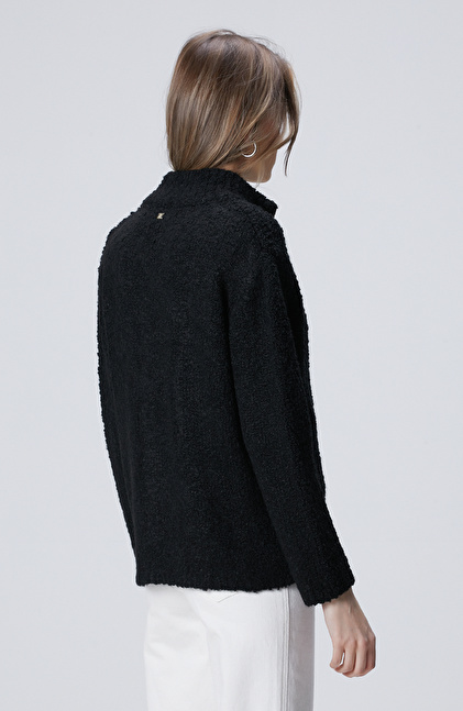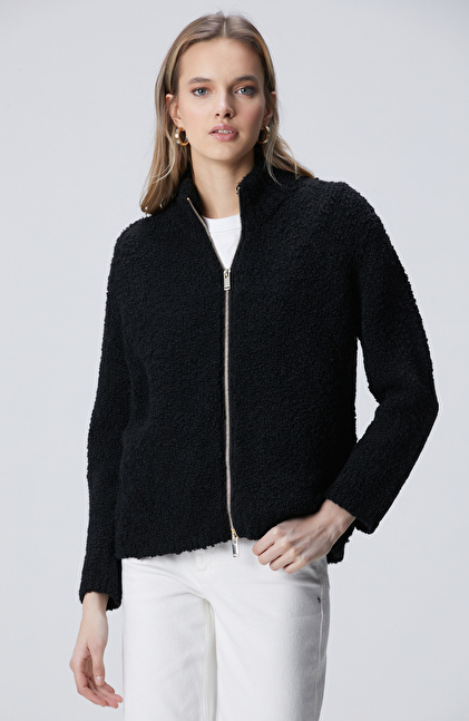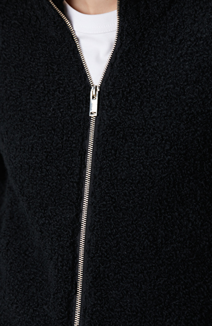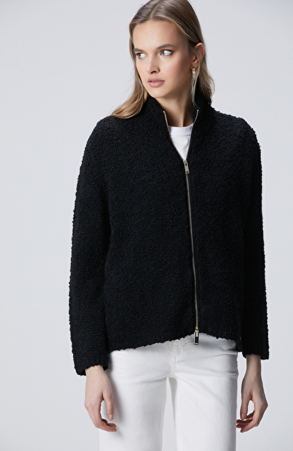Siyah Dik Yaka Buklet İp Fermuarlı Hırka