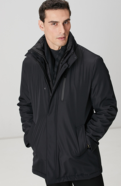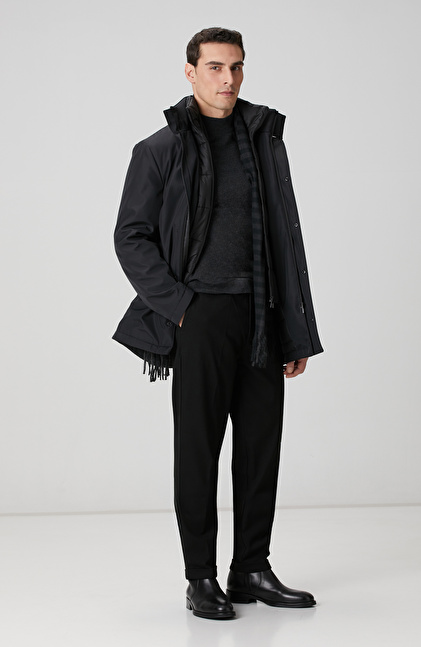 Siyah Dik Yaka Casual Kaban