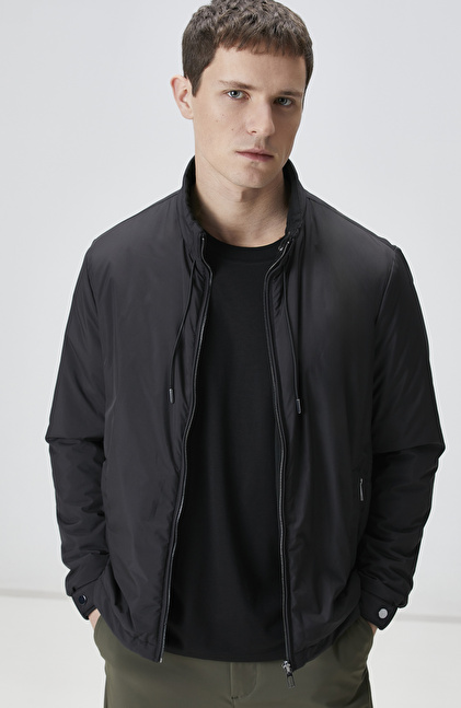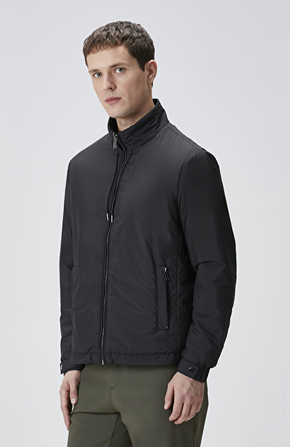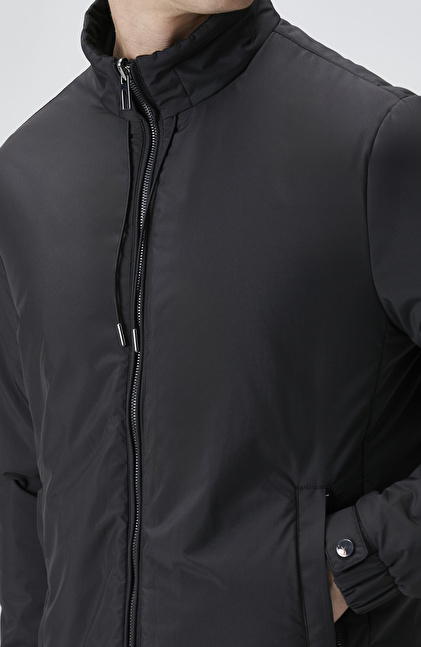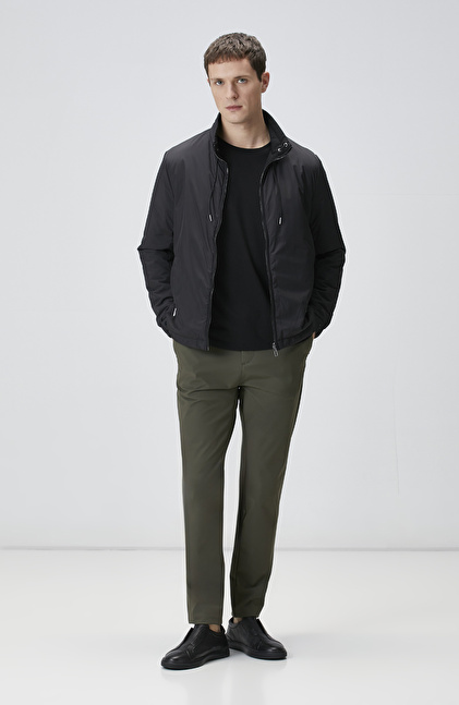 Slim Fit; Dik Yaka; Fermuar Kapatmalı; Yan Cep Fermuarlı Mont