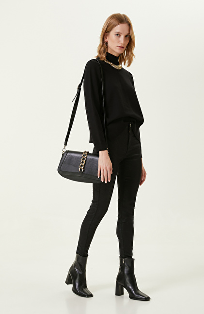 NetWork’ün çağdaş moda anlayışını yansıtan Siyah Dik Yaka Triko Kazak, kadın sonbahar/kış sezonu için hazırlanır. NetWork Casual koleksiyonunda yer edinen parçanın kalıbı basic fittir. Dik yaka ve uzun kol detaylarına sahip model, kışın üst düzey konfor sağlar. Soğuk havalarda kurtarıcı görevi üstlenen tasarımın yapısında yüksek kaliteli viskoz karışımlı kumaşlardan yararlanılır. Endless Story serisine dahil olan kazak, sırt kısmında markanın lüks ve yenilikçi imajını simgeleyen şık bir NetWork monogramına sahiptir. Etkileyici aura taşıyan kadınlara hitap eden uzun kol dik yaka basic trikoyu; siyah deri skinny pantolon, siyah topuklu bot, altın detaylı omuz çantası ve altın rengi büyük kolye ile kombinleyebilirsiniz.
