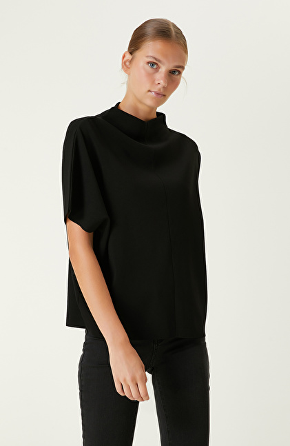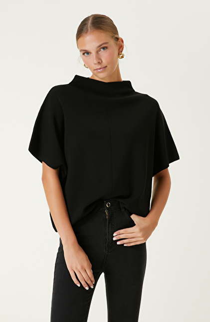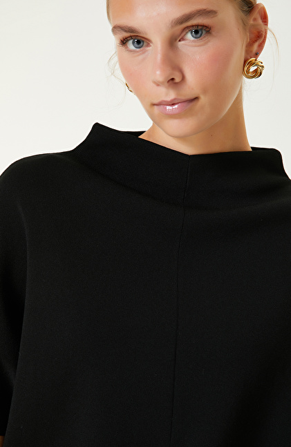 Siyah Dik Yaka Triko Kazak