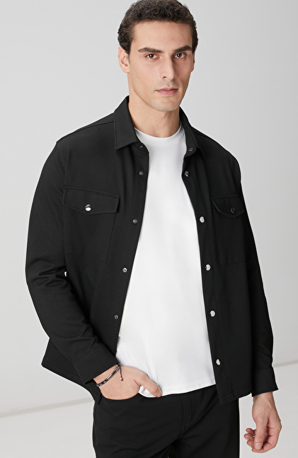 Siyah Diyagonal Dış Gömlek