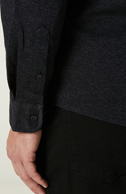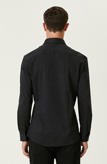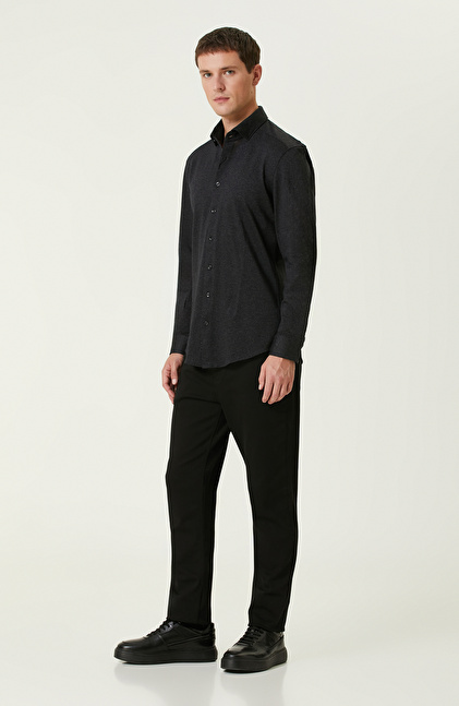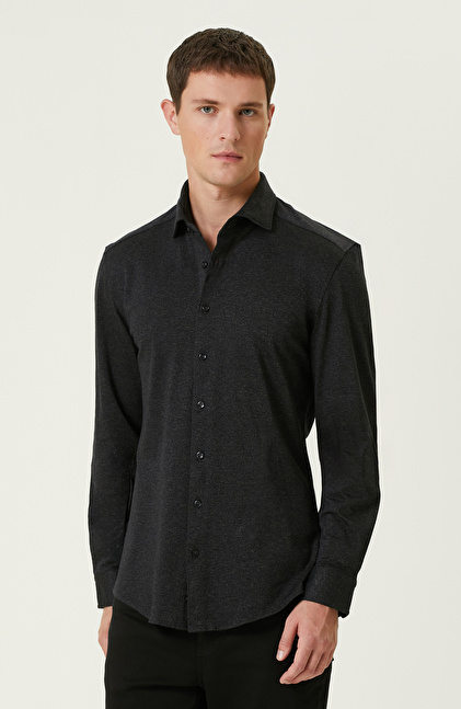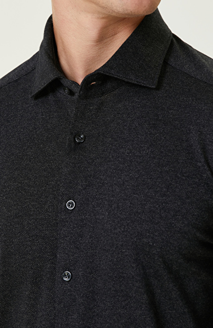 NETWORK Smart Casual Siyah Diyagonal Örme Gömlek