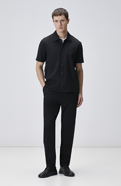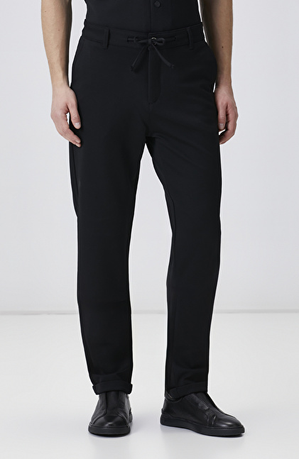 Siyah Duble Paça Diyagonal Örme Jogger Pantolon