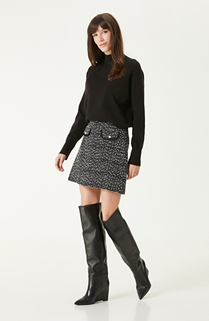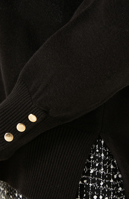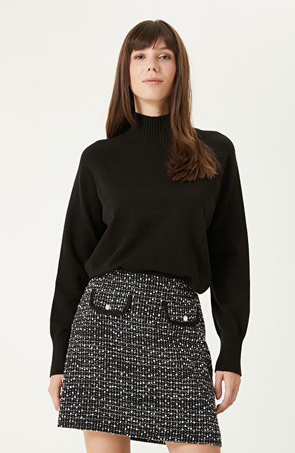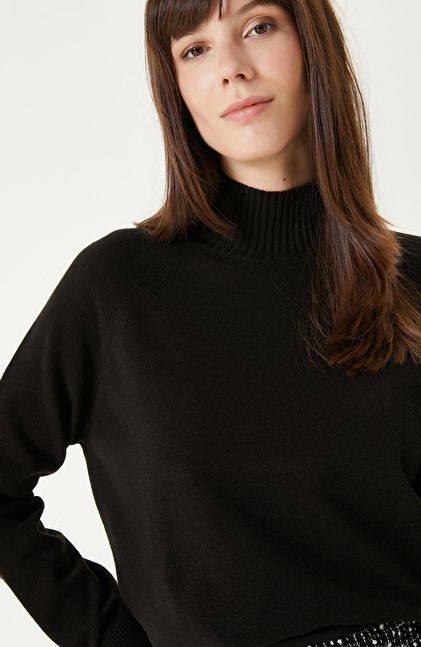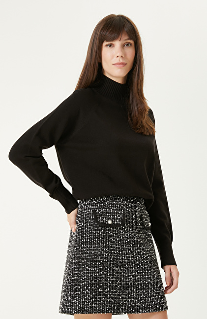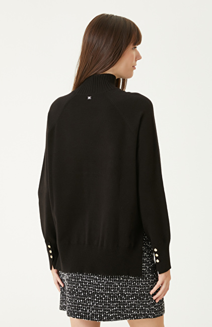 Siyah Düğme Detaylı Balıkçı Yaka Basıc Triko Kazak