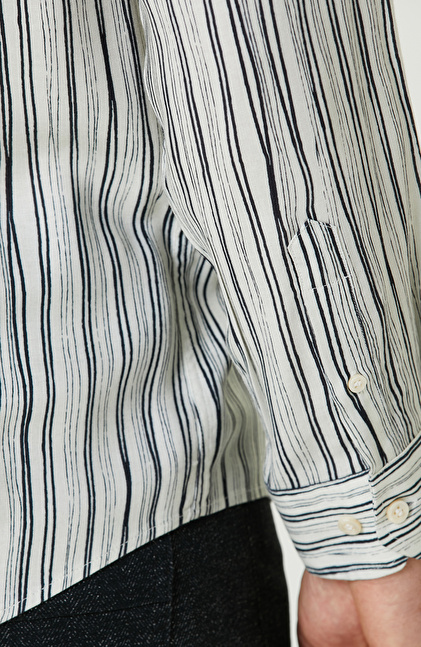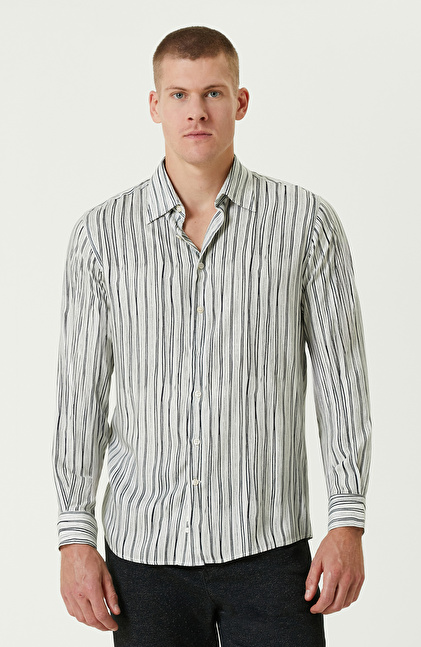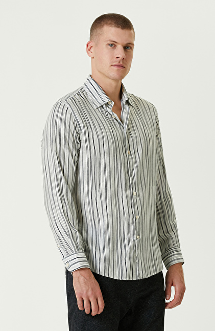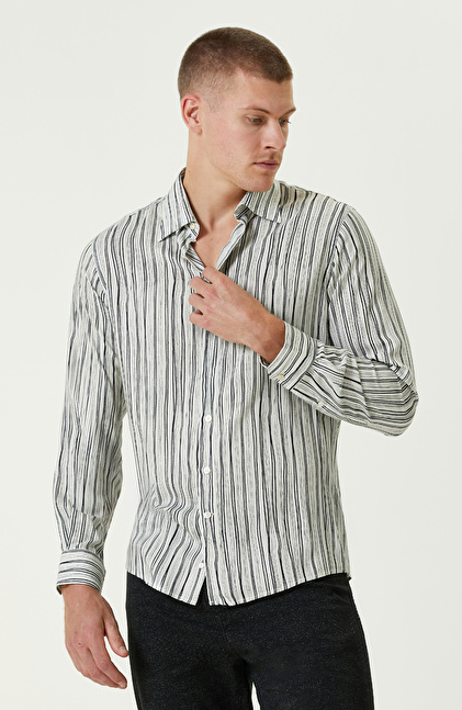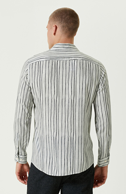 Siyah Ekru Comfort Fit Çizgili Gömlek