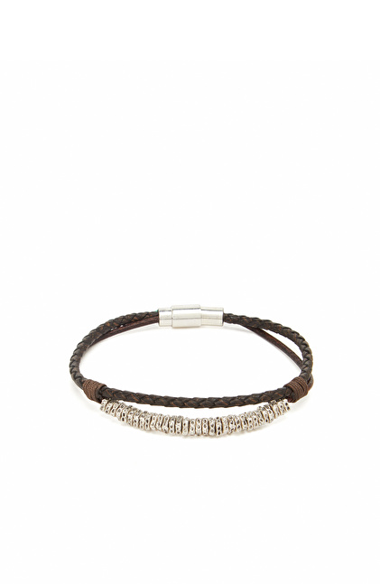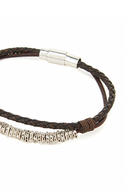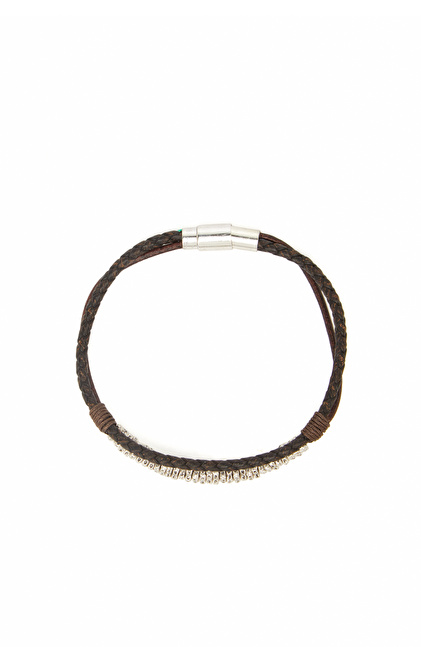 Siyah Erkek Deri Karışımlı Bileklik