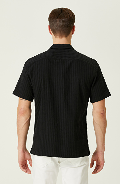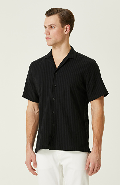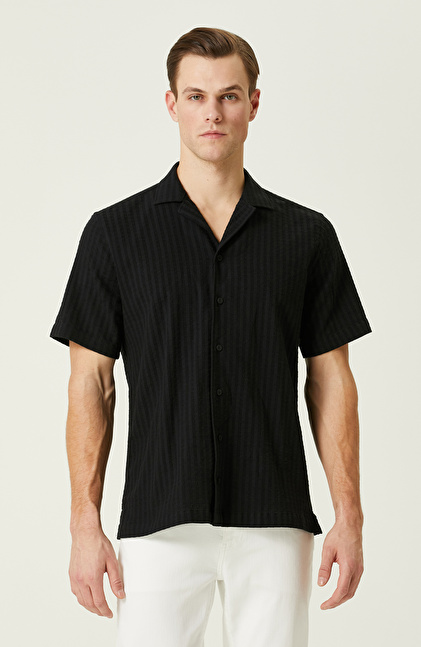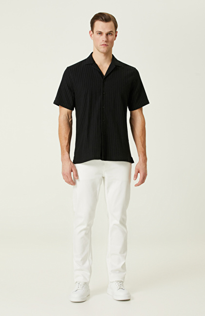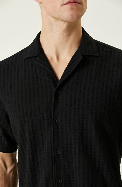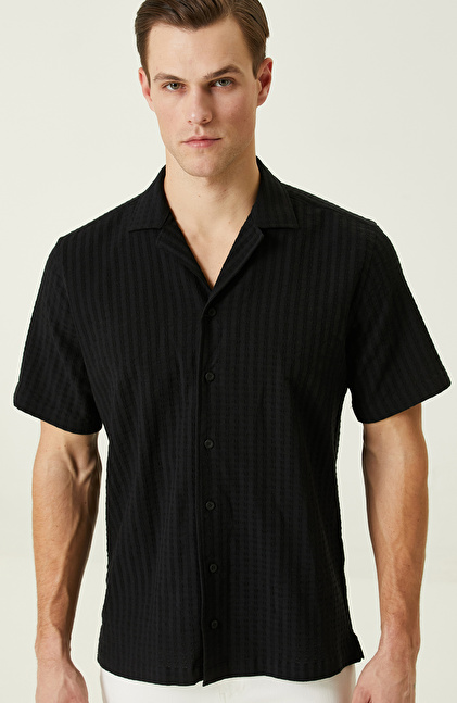 Comfort Fit; Apaş Yaka; Jakarlı Gömlek