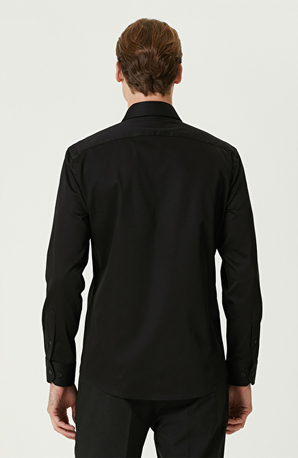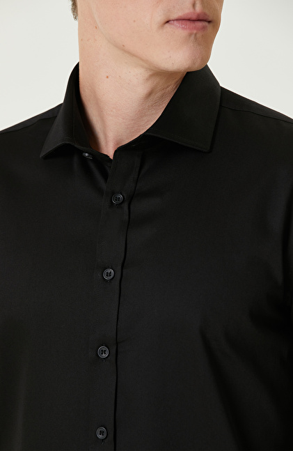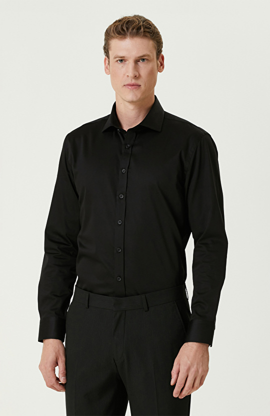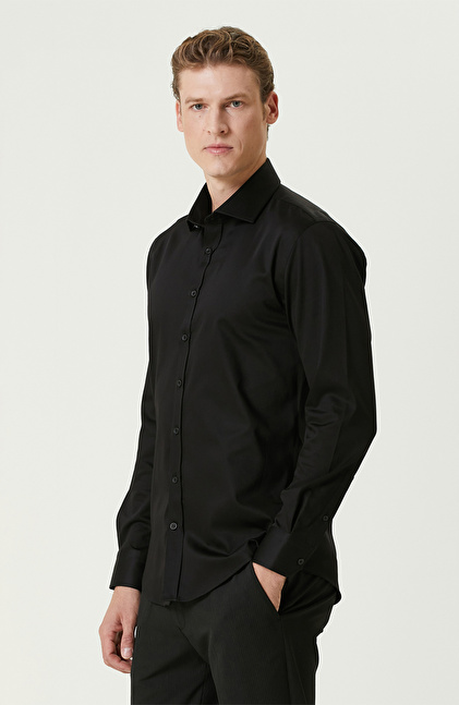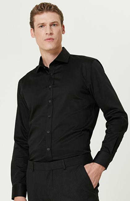 Slim Fit; Balenli Yaka; Uzun Kol, Düz Pamuk; Saten Gömlek