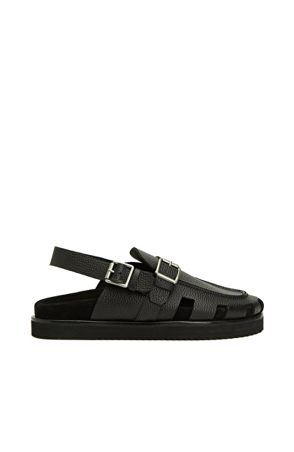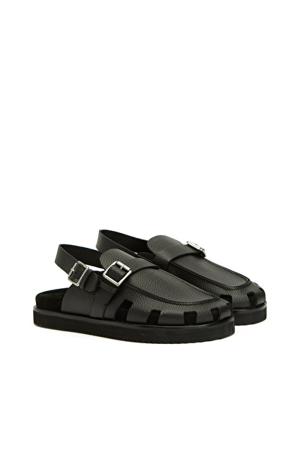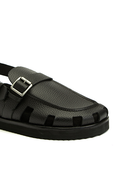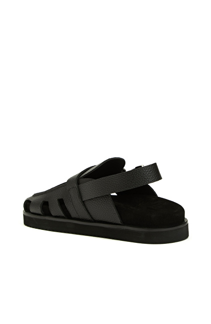 Siyah Günlük Rahat Erkek Deri Sandalet