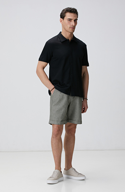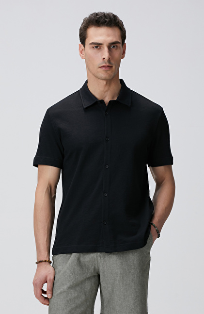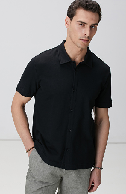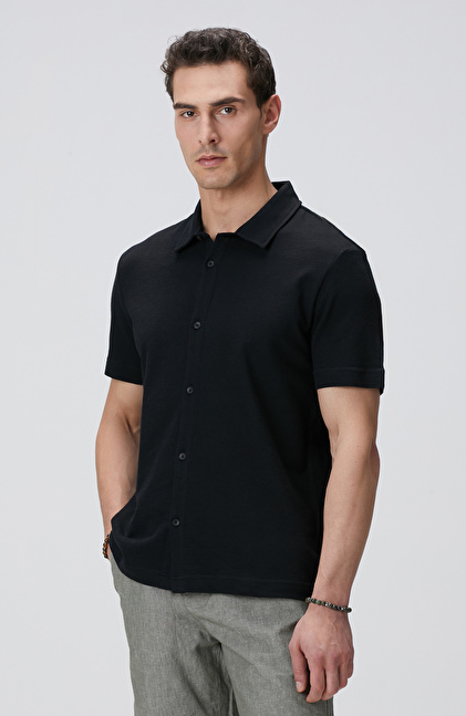 Slim Fit; Gömlek Yaka; Kısa Kol; Jakarlı Gömlek