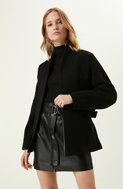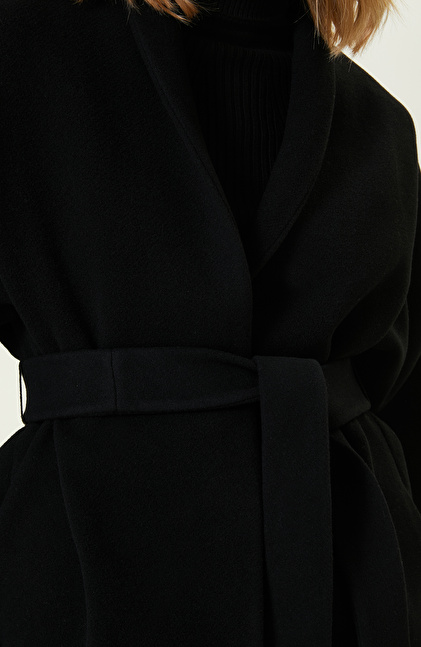 Uzun Kol; Regular Fit; Dik Yaka Kaban; Desen: Düz