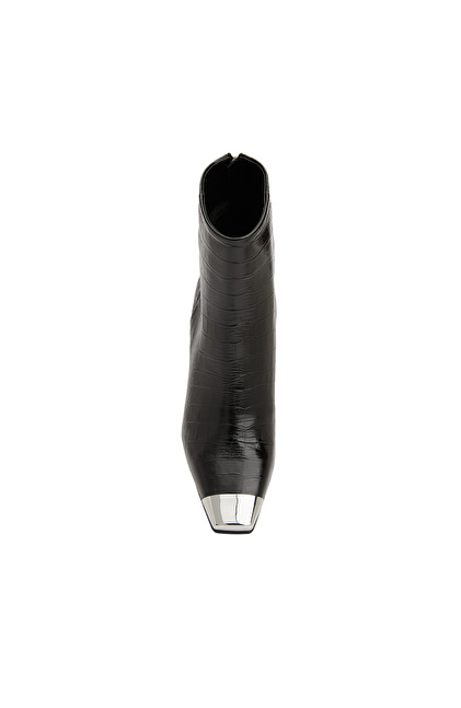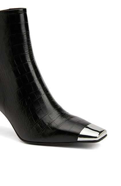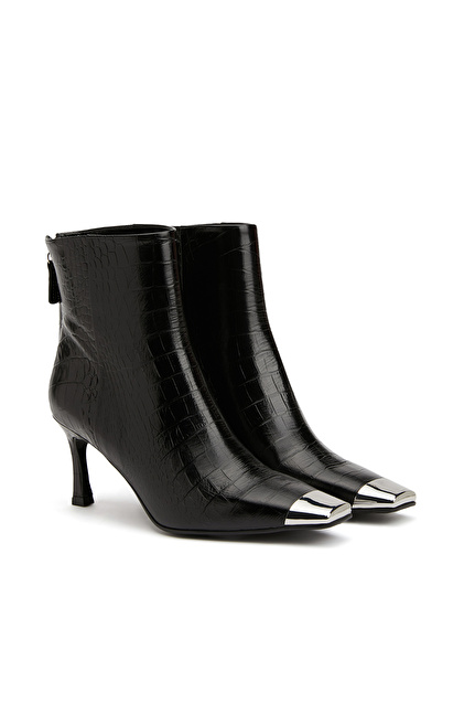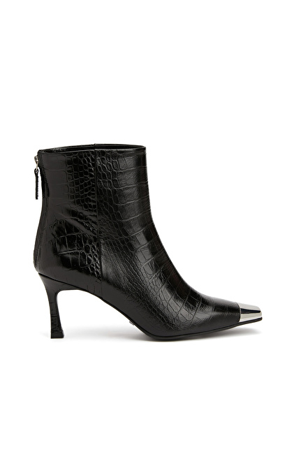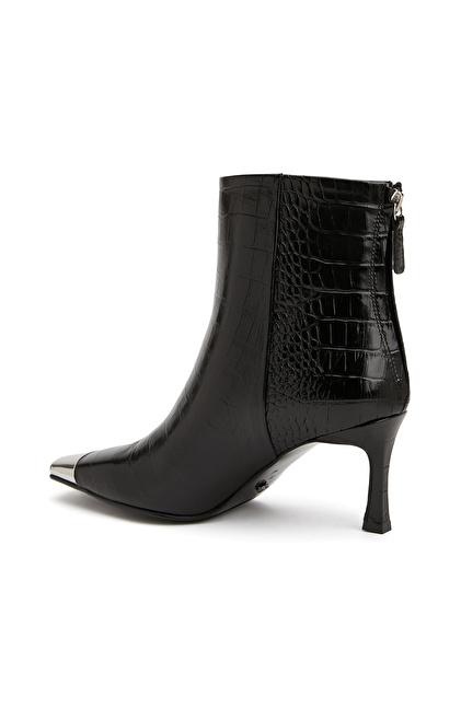 Küt burun, Fermuar Kapatmalı, Deri Bot. Kroko Desenli, Kauçuk Tabanlı, Orta Ökçeli: 7 cm,