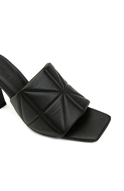 Siyah Kadın Deri Terlik