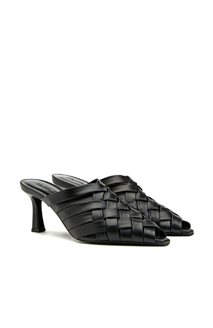 Siyah Kadın Deri Terlik