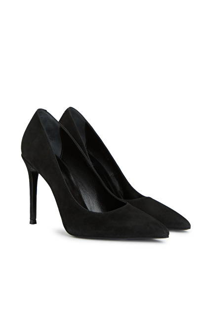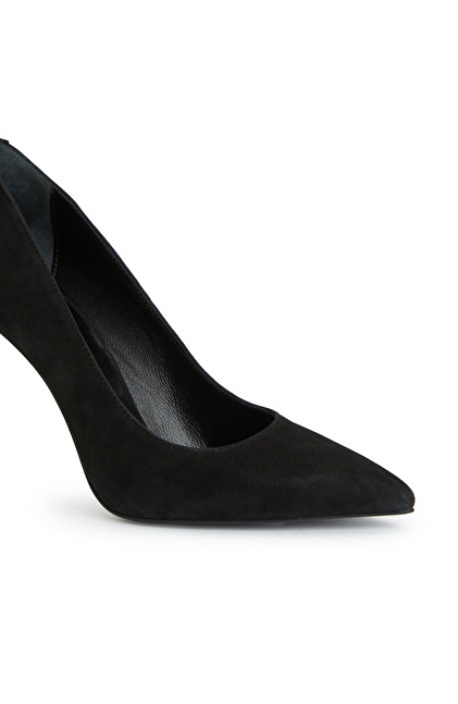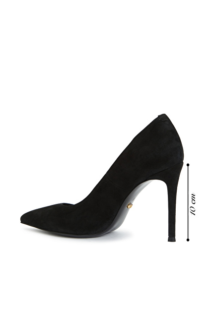 Siyah Kadın Süet Deri Topuklu Ayakkabı
