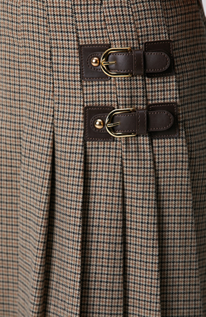 Siyah Kahverengi Kazayağı Desenli Mini Etek